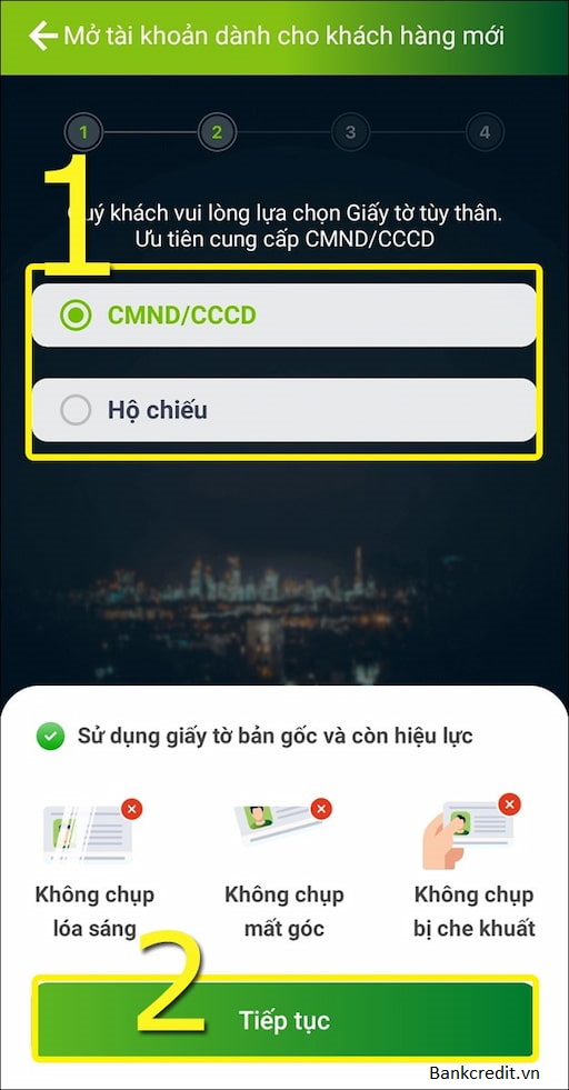 - Bước 3: Lựa chọn loại giấy tờ tùy thân phù hợp để xác minh danh tính. Như là thẻ CMND/CCCD/Hộ chiếu còn hiệu lực. Cần lưu ý đọc kỹ những hướng dẫn để phải thực hiện theo đúng yêu cầu.