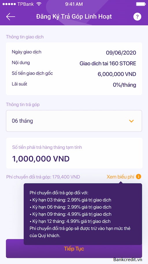 Cách Đăng Ký Phí Chuyển Đổi Trả Góp TPBank EVO