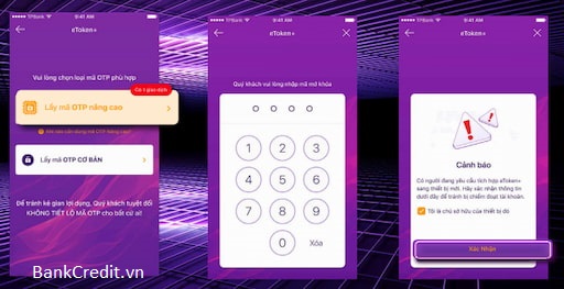 Bước 2: Nhập mã xác nhận OTP từ eToken+ trên thiết bị đang được kích hoạt.