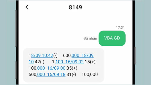 - Cú pháp Sao Kê cho tài khoản mặc định: VBA GD gửi 8149.
