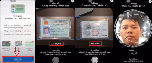 - Bước 3: Xác minh thông tin bằng hình ảnh CMND => Chụp hình 2 mặt giấy tờ tùy thân rõ nét, không mất góc hay chói nắng.