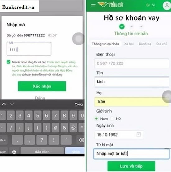 Bước 3: Tiếp theo, khách hàng sẽ điền đầy đủ và chính xác thông tin cá nhân theo yêu cầu của ứng dụng gồm: Họ và tên, số chứng minh, địa chỉ, thông tin nơi làm việc,…