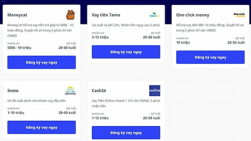 | Hình thức vay | Vay tiền cấp tốc online cmnd |